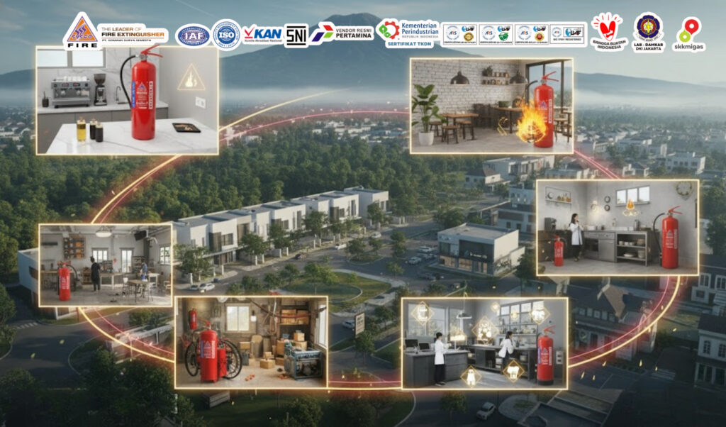 | Kafe/Restoran Modern | Minyak Panas (Kelas K), Gas (Kelas B) | Menyelamatkan investasi bisnis dari kebakaran dapur yang cepat meluas. |