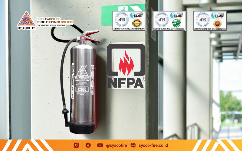 NFPA sendiri organisasi internasional yang mendedisikan diri untuk keselamatan terkait kebakaran, telah menetapkan standard NFPA 10. Standard ini merinci persyaratan untuk alat pemadam kebakaran portable , yang mencakup seperti:
